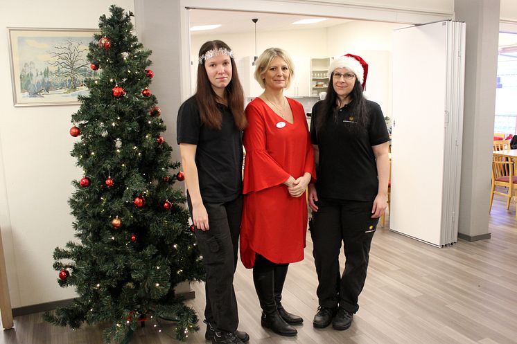 Cecilia Aurell (i mitten) tillsammans med Matilda Gustavsson (till vänster) och Veronica Svensson (till höger) från restaurangen som alla finns med och hjälper till under julafton.