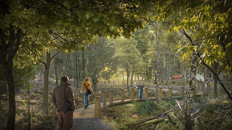 Illustrationsbild av park med spänger där både människor och djur kan vistas.