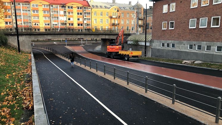 Första delen av Vikenförbindelsen är nästan helt klar och byggnationen av etapp två är redan igång. Imorgon, fredag, öppnas Tullhusgatan, hela Löfbergscirkulationen och Hamngatan för trafik igen.