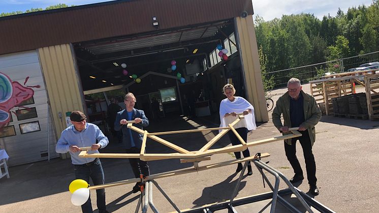 Arbetsmarknads- och socialnämndens ordförande Per-Inge Lidén (MP), teknik- och fastighetsnämndens ordförande Henrik Lander (C) och miljönämndens ordförande Torbjörn Nilsson (MP) var på plats för att symboliskt såga av en planka med en såg som anpassats för social distansering med anledning av det rådande coronaläget. När brädan gick i tu förklarade de butiken öppnad.