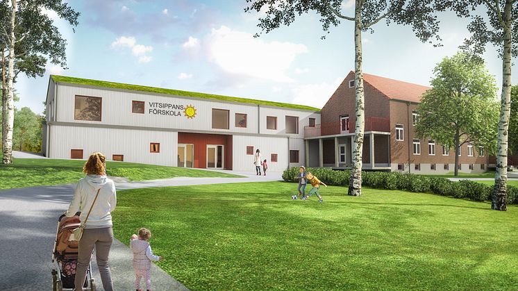 Från gammalt barnhem till modern förskola. Nu ska förskolan Vitsippan på Sommaro renoveras och få en ny tillbyggnad. Tillsammans med barn på Vitsippans förskola kommer kommunalråd Niklas Wikström (L) och ordförande i teknik- och fastighetsnämnden Henrik Lander (C) påbörja renoveringen med varsam hand.