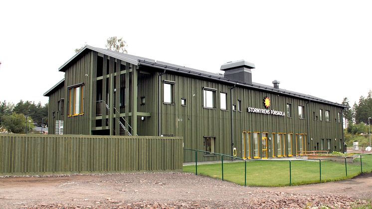 Idag invigdes den nya förskolan Stormyren på Stockfallet. I linje med förskolans skogstema sågade barnen av en gren i stället för att klippa det traditionsenliga bandet, och det bjöds på hembakat fika och rörelsedans.