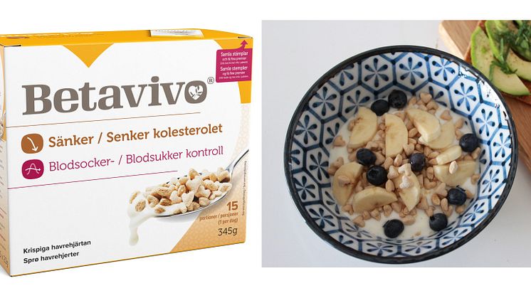 Ungefär sex av tio vuxna har förhöjda kolesterolnivåer i blodet. Det beror på livsstil, kost och ibland ärftliga faktorer. En daglig portion Betavivo havrehjärtan har en bevisad effekt att sänka kolesterolet. Dess unika process och patenterade formula ger en hög koncentration betaglukan. Betaglukanen i Betavivo bidrar även till en minskning av blodsockerhöjningen efter måltiden.