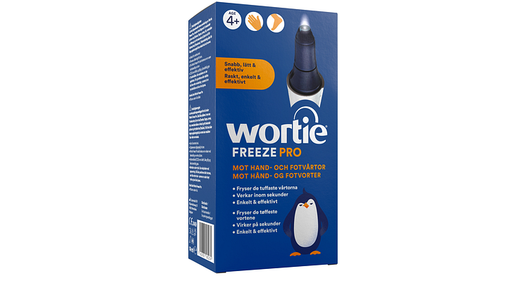 Hundratusentals svenskar drabbas av vårtor.1 De är i regel ofarliga men ofta besvärande och svåra att bli av med. Nu finns ett helt nytt behandlingsalternativ. Wortie Freeze Pro fryser de tuffaste vårtorna snabbt, lätt och effektivt. Wortie Freeze Pro kan användas från 4 år. Säljs på apotek från februari.
