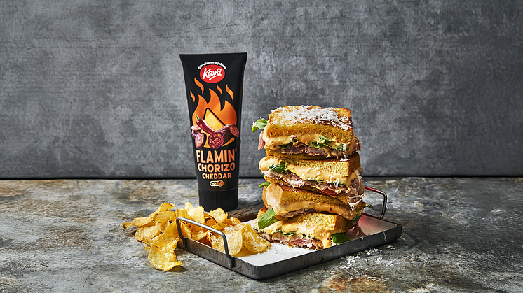Kavli lanserar Flamin’ Chorizo Cheddar, den hetaste smaken i Kavli Hot-serien. Mjukosten kombinerar fyllig cheddar med pepprig chorizo och chili/cayenne för en krämig, intensiv hetta. Kavli Hot serien, med sin moderna design i stående tub, möter den heta mack trenden. Tillverkad i Älvsjö, hållbar utan kyla och perfekt för mackor, toast, snacks och som fyllning. Kvali - Gör världen mjukare.