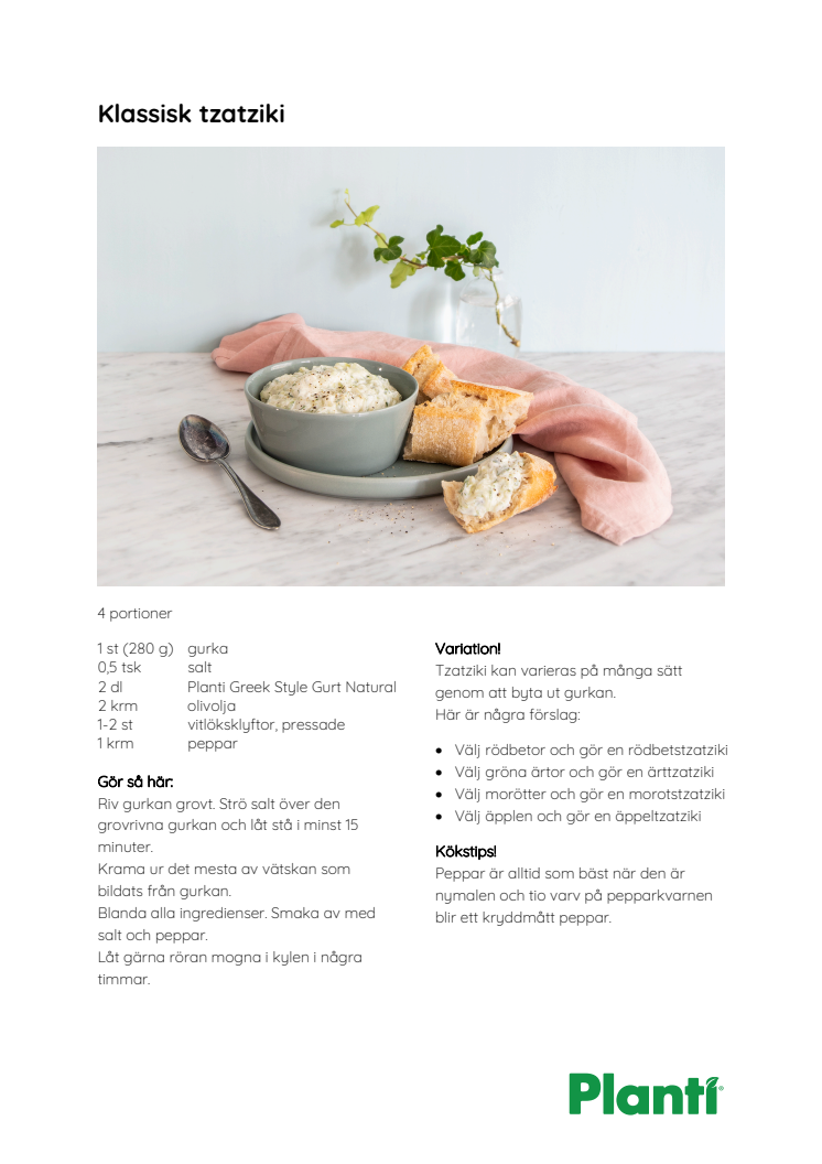 Recept klassisk tzatziki från Planti