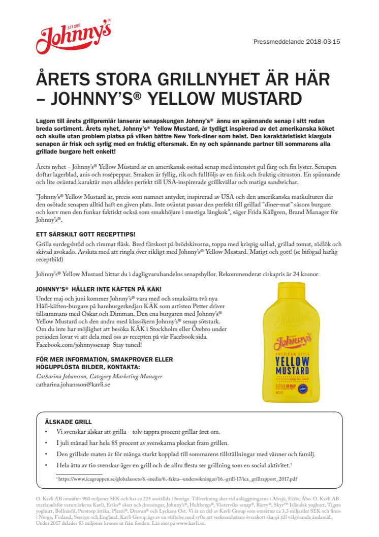 Årets stora grillnyhet är här - Johnny's® Yellow Mustard
