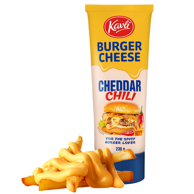 Efter en enastående mottagning av Sveriges första hamburgerost på tub höjer Kavli nu temperaturen. Kavli presenterar nu stolt sin senaste nyhet i sortimentet; Burger Cheese Cheddar Chili en smakrik nyhet som kombinerar den krämiga konsistensen av svenskproducerad burgarost med en perfekt dos hetta från chili.
