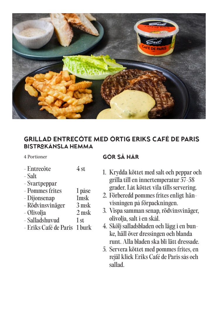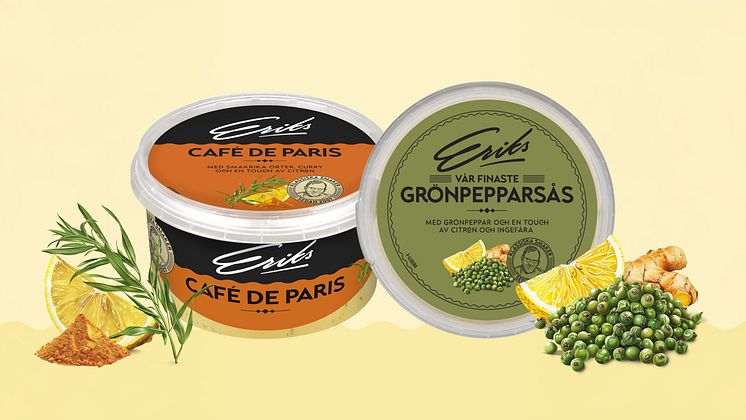 Lagom till grillsäsongen lanseras Eriks Café de Paris, en fyllig och kryddig sås med smakrika örter, curry och en frisk touch av citron, samt Eriks Grönpepparsås, med balanserad grönpepparsmak, en hint av citron och ingefära. Två lyxiga och klassiska såser inspirerade av restaurangvärlden – nu redo att avnjutas hemma.