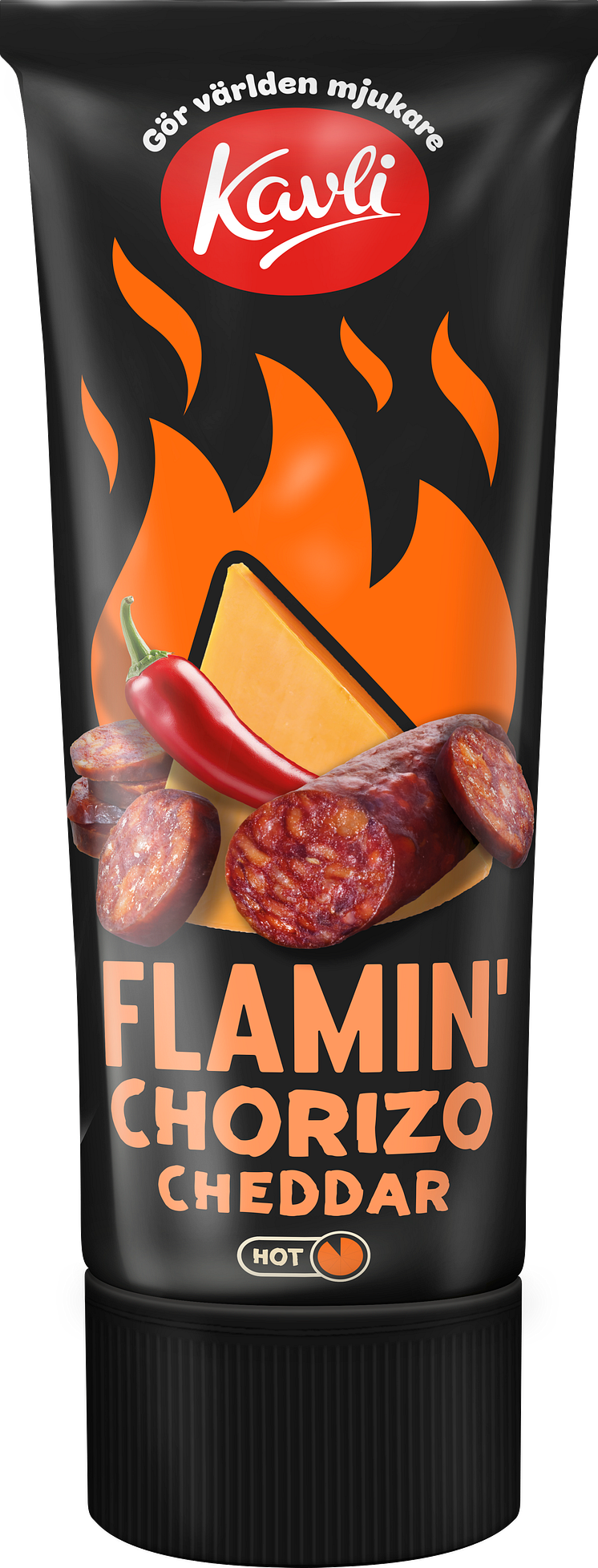 Kavli fortsätter att vända upp och ner på sin mjuka ost och lanserar ytterligare en nyhet i den populära serien Kavli Hot mjukost. Den nya smaken Kavli Flamin’ Chorizo Cheddar är numer den hetaste osten i sortimentet!