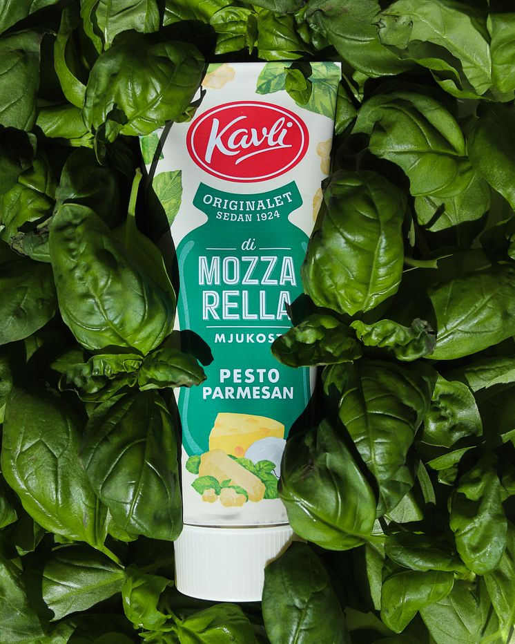 Kärlek på tub. Kavlis nya bredbara ost di Mozzarella Pesto Parmesan är en kärlekshyllning till Italien, att njutas på mackan.