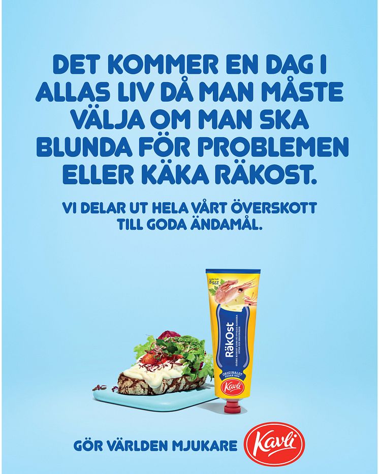 I somras inledde Kavli ett samarbete med TBWA. Kalle Widgren, VD/projektledare på TBWA berättar: ”Det var såklart fantastiskt att börja jobba med en kund som står för och gör så viktiga saker – för ett år sedan visste ingen på byrån om att Kavli skänker hela överskottet till goda ändamål, så när vi fick uppdraget kände vi omedelbart att det är något som måste pratas mer om.” Den första kampanjen lanseras i form av en utomhuskampanj och filmer på sociala medier.