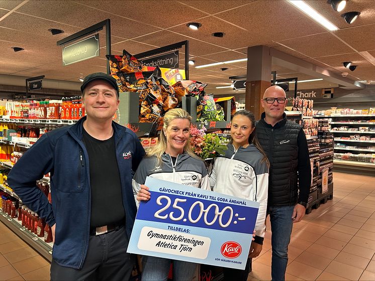 Prisutdelningen skedde på Ica Supermarket Almö Livs där Kavlis säljare Fredrik Johansson överlämnade checken till Steiney Kristinsdottir från Gymnastikförening Atletica.