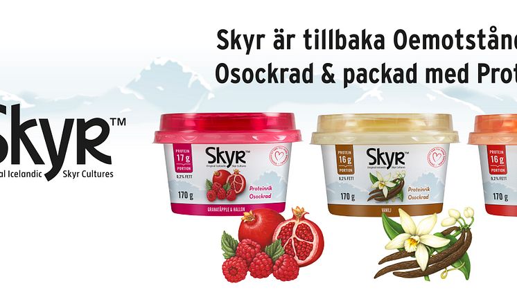 Under våren relanseras Skyr™ med ny krämigare konsistens, utan tillsatt socker och i ny förpackning med sked i locket. Nya Skyr finns i tre smaker: