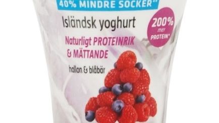 Nu kommer Skyr™ Isländsk yoghurt med en nyhet som innehåller ännu mindre socker. Den nya smaken hallon & blåbär är smaksatt med syrliga och söta bär och innehåller 40% mindre socker. En del av sockret är ersatt med det naturliga sötningsmedlet Stevia (Steviolglykosider).