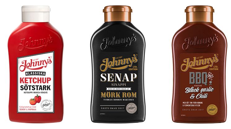 Inför grillpremiären 2017 släpper Johnny’s® tre nya produkter – en BBQ-sås med smak av black garlic och chili, en senap med smak av mörk rom och sist men inte minst: Johnny’s® sötstarka ketchup! Produkterna blir de senaste tillskotten till Johnny’s® breda utbud av smakrika grillprodukter.