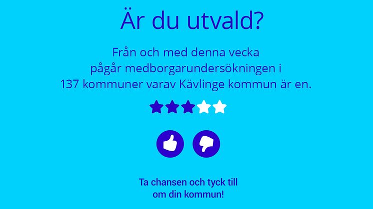 Perioden 24-30 augusti kommer 1200 slumpmässigt utvalda kommuninvånare över 18 år att få ett informationsbrev med inloggningsuppgifter till en webbenkät från SCB. Genom att svara på 128 frågor erbjuds de en extra möjlighet att påverka kommunens prioriteringar, ge feedback och tycka till. Resultatet redovisas i början av 2023 och Kävlinge kommun hoppas på rekordstorhög svarsfrekvens.