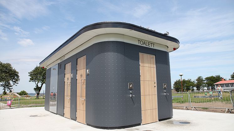 Mellan Strandpaviljongen och beachplanen finns toaletter och skötrum för allas bekvämlighet.