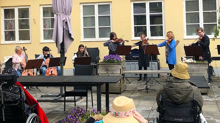 Färdigvaccinerade på det somatiska boendet Tallgården i Dösjebro tog emot Kulturskolans elever på en privat konsert härom dagen. Konserten uppskattades innerligt – inte minst av eleverna som sett fram emot möjligheten att återigen sprida glädje med sitt musicerande.