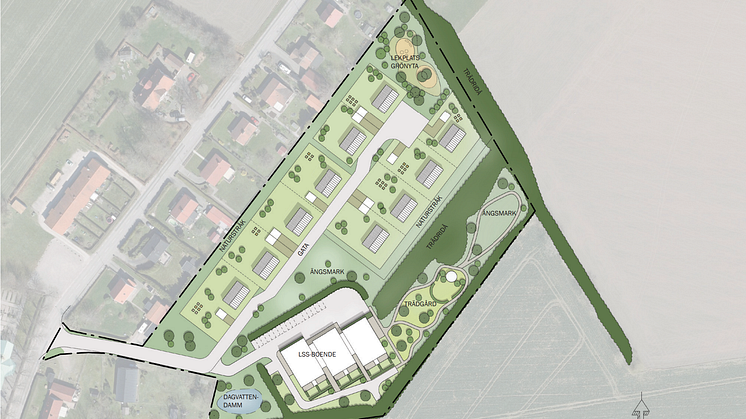 Enligt förslaget ska tio villor i 1-1,5 plan byggas i anslutning till befintliga hus i byn. De nya bostadshusen ska utformas i harmoni med byns befintliga bebyggelse, såväl storleksmässigt som utseendemässigt. I området anläggs också gröna stråk och norr om villorna planeras en grönyta för lek och umgänge.