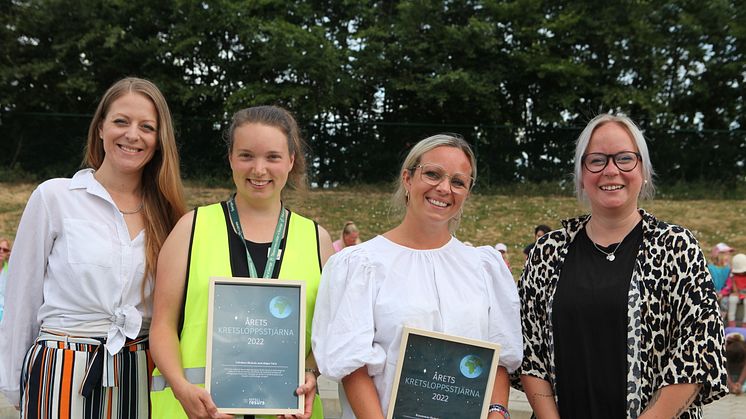I bubblande solsken med strålande förskolebarn i en amfi-teater delade idag Kommunstyrelsens ordförande Annsofie Thuresson och kommundirektör Mikael Persson ut priset Årets Kretsloppsstjärnor i samarbete med Sysav. Tolvåkers och Brynstenens förskola blev överraskade med priset, och 10 000 kr, för sitt TaGe-skåp som både formar en hållbar framtid här och nu samtidigt som det lär barnen om hållbarhet.