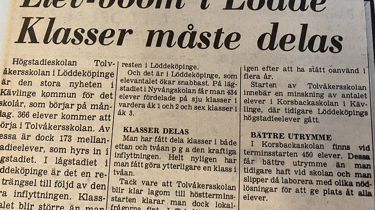 I gamla klipp från Skånska dagbladet går det att läsa om hur Kävlinge är en kraftigt expanderande kommun och tidningen noterar att vi 1974 hade en av de procentuellt högsta befolkningsökningarna i landet, även frånsett sammanslagningen med Löddeköpinge vid årsskiftet.