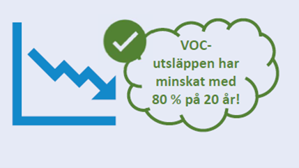 Sedan mätningarna startade har utsläppen av flyktiga organiska lösningsmedel (VOC) från de tillverkande enheterna minskat med 80 %. Trenden är mycket tydlig och beror både på bättre rening av utsläpp men även på övergången till vattenburna produkter.
