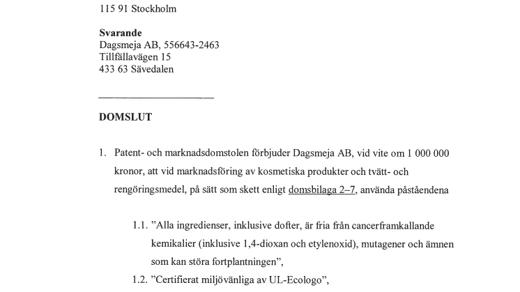 –Det är positivt att domstolen klargör vad som är vilseledande marknadsföring när det kommer till hälso- och miljöpåståenden för produkter. Vi är nöjda med hur domstolen har resonerat och vi tror att det kan finnas andra som kan ta lärdom av detta, avslutar Olof Holmer.