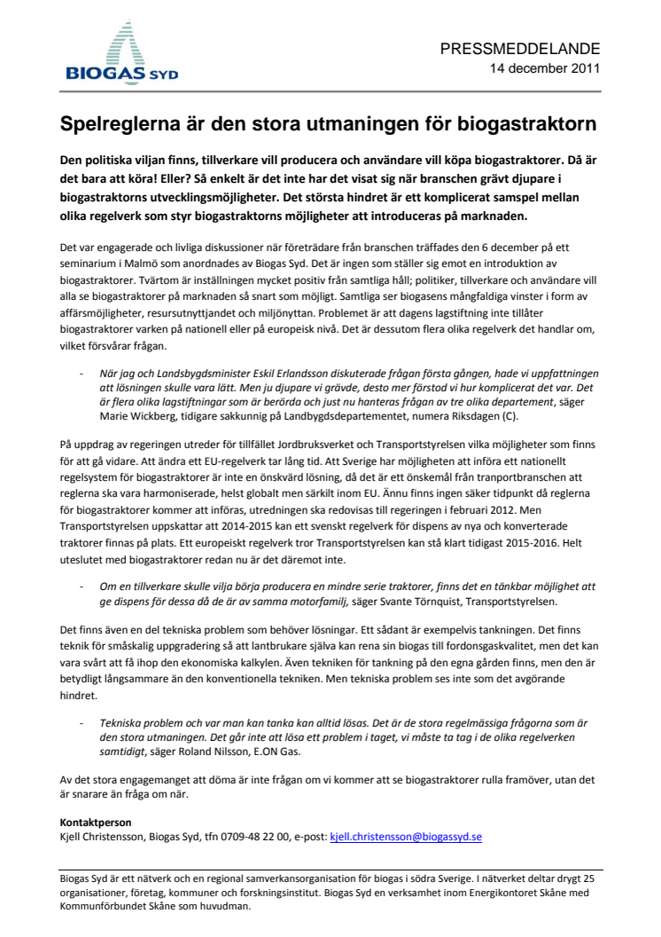 Biogas Syd: Spelreglerna är den stora utmaningen för biogastraktorn