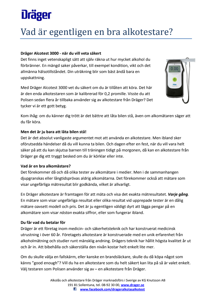 Funderar du på att köpa alkotestare och har svårt att välja? Vi kan berätta om varför vi tycker du ska välja Dräger.