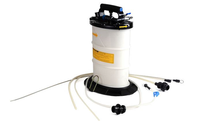 Kamasa Tools oljesug K 10655 kan även användas för avluftning av bromssystem och till vätskor med låg viskositet som till exempel vatten. Det går att driva oljesugen med tryckluft eller manuell pumpning.