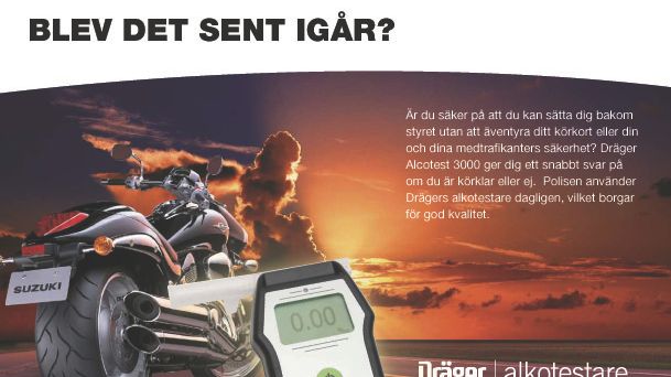 I helgen går startskottet för Mälaren Runt på hoj. I år är det 27:e upplagan av arrangemanget som Tidningen MCM anordnar. Som ett delmål kan hojåkarna svänga in på MCM:s Hojmarknad vid Gröndals Motorbana i Eskilstuna för shopping. Dräger alkolås & alkotest kommer att ställa ut på plats. Besök oss gärna om du vill pröva en alkotestare eller ett alkolås, ställa frågor till produktspecialisten Björn Johansson eller köpa Dräger Alkotest 3000. Vi finns på plats i Eskilstuna på lördag mellan kl. 10.00-16.00. Varmt välkommen!