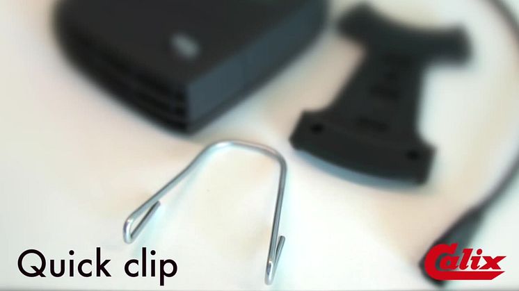 Med det nya Quick Clip-fästet monterar du kupévärmaren i bilen utan vare sig verktyg eller åverkan på inredning. Fästet passar alla Calix Slim Line-kupévärmare.