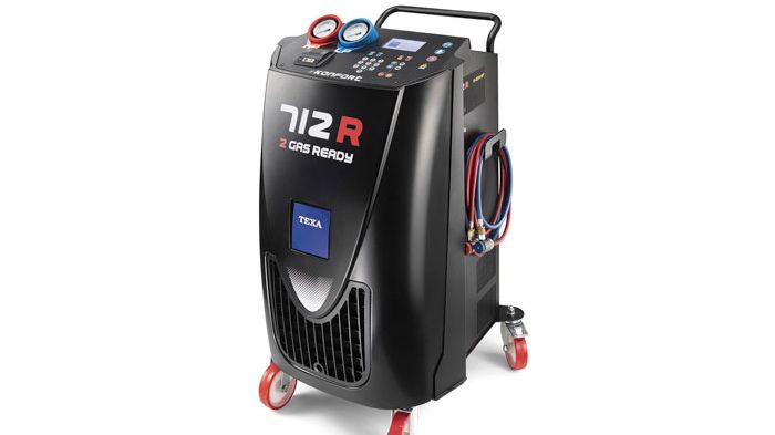 TEXAs ny AC-maskin Konfort 712R har ärvt egenskaper från företagets premium-maskiner, som helautomatiska funktioner och elektronisk oljevåg. Maskinen är av sluten modell och därmed mycket tålig.