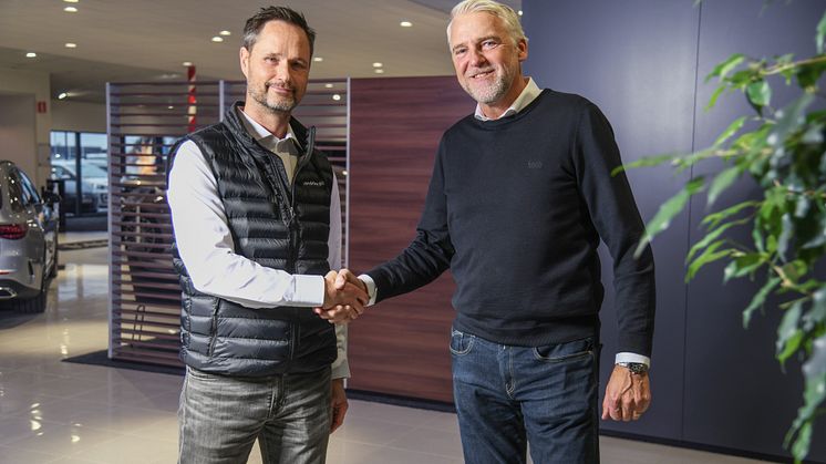 • Daniel Eriksson _ Landrins Bil och Johan Lindén KGKAutoexperten skakar hand