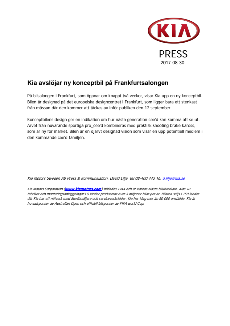 Kia avslöjar ny konceptbil på Frankfurtsalongen