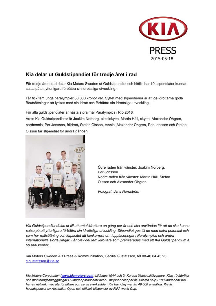 För tredje året i rad delar Kia Motors Sweden ut Guldstipendiet och hittills har 19 stipendiater kunnat satsa på att ytterligare förbättra sin idrottsliga utveckling.