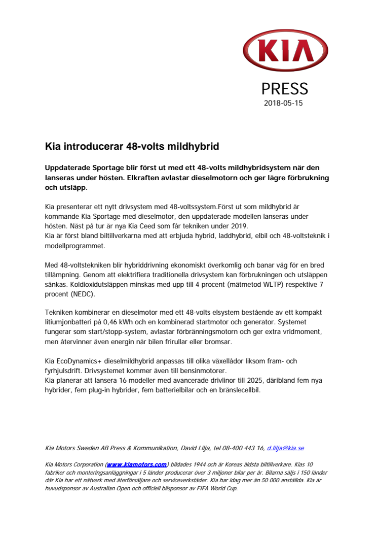 Kia introducerar 48V mildhybrid