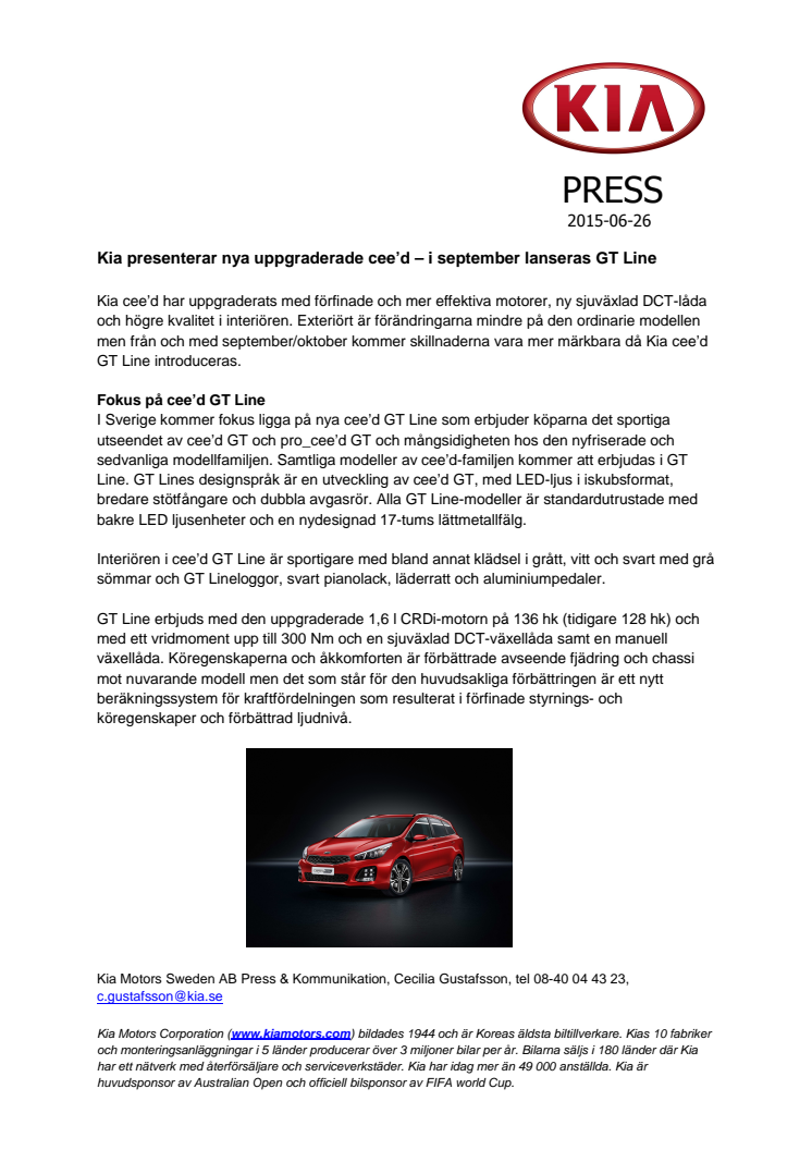 Kia presenterar nya uppgraderade cee'd - i september lanseras GT Line