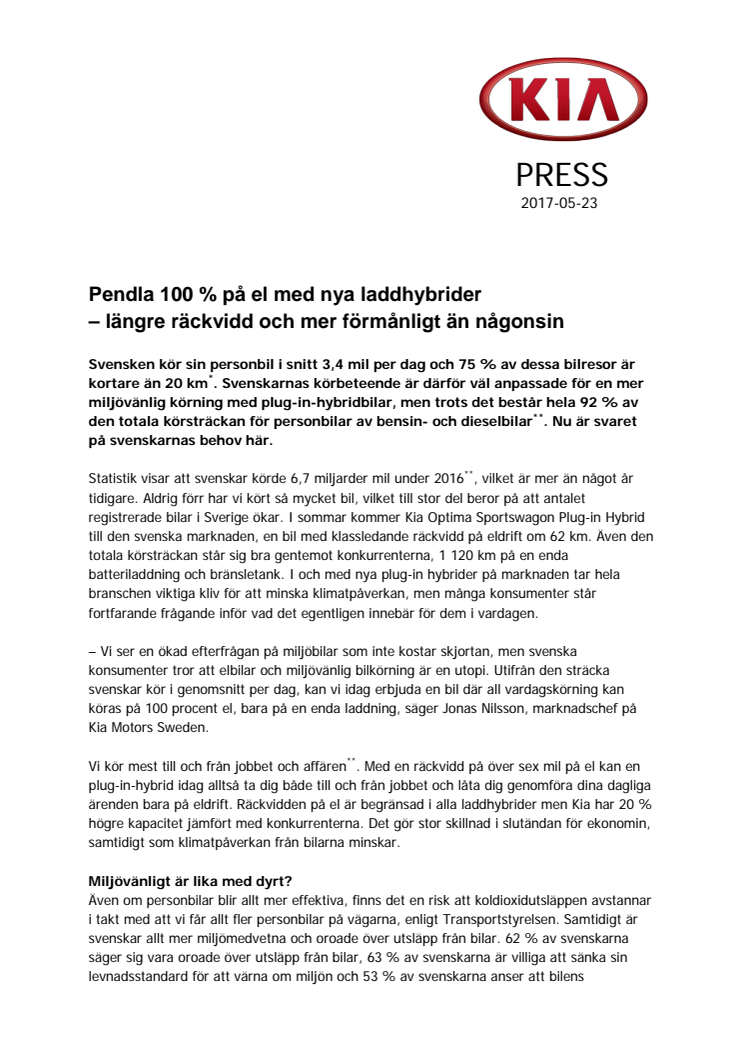 Pendla 100 % på el med Optima Sportswagon Plug-in Hybrid