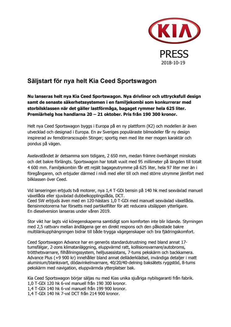 Nu lanseras helt nya Kia Ceed Sportswagon. En körglad familjekombi som konkurrerar med storbilsklassen när det gäller lastförmåga.
