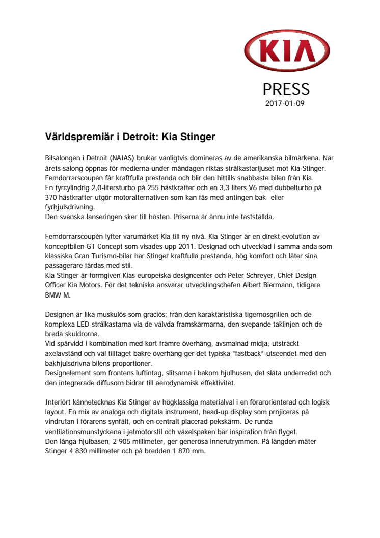 Femdörrarscoupén får kraftfulla prestanda - V6 med dubbelturbo på 370 hästkrafter - och blir den hittills snabbaste bilen från Kia.