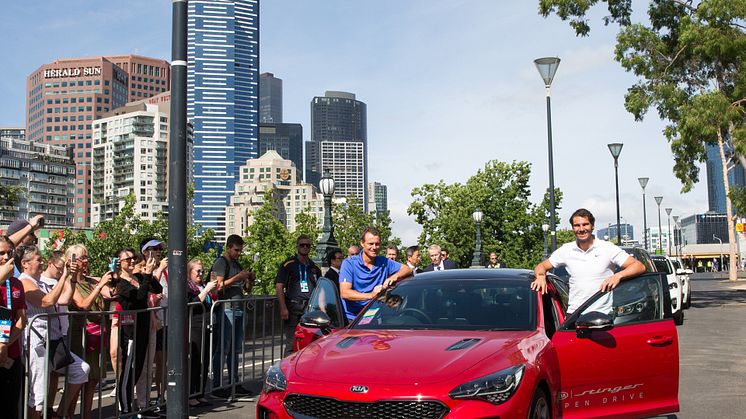 Snart drar Australian Open 2018 i gång - Lleyton Hewitt och Rafael Nadal lämnar över de officiella sponsorbilarna från Kia.