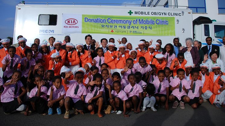 Kia Motors Corporation har donerat en mobil läkarklinik i Etiopien, ett av världens minst utvecklade länder, som ett sätt att bidra till att förbättra mödrars hälsa och spädbarnsvård.