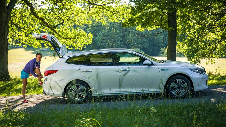 Som Kia-ambassadör kör hon nya Optima Sportswagon Plug-In-Hybrid.