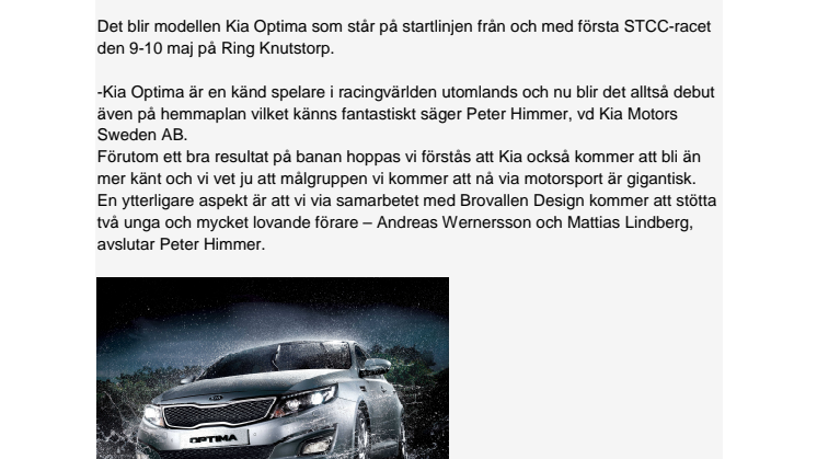Det blir modellen Kia Optima som står på startlinjen från och med första STCC-racet