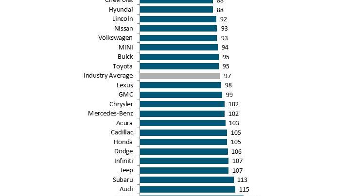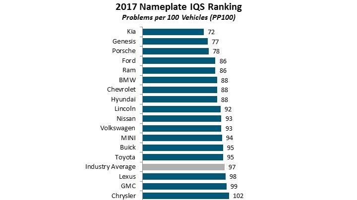 Den årliga undersökningen analyserade i år svar från 77 415 respondenter, som täckte 243 fordonsmodeller över 26 fordonssegment. Bilarna rankas efter ett brett spektrum av kvalitetsproblem som rapporterats av bilägarna.