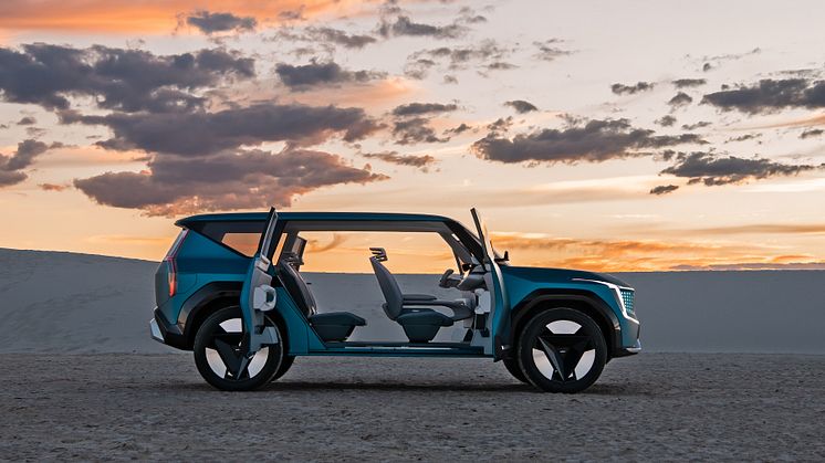 Concept EV9 är ett uttryck av hur Kias satsning på hållbara mobilitetslösningar kan se ut i linje med företagets framtidsvision som man nyligen visade i den digitala presentationen ”Kia Sustainability Movement”. Bilens design är inspirerad av naturen och använder material utvecklade från återvunnet skräp insamlat från våra hav.