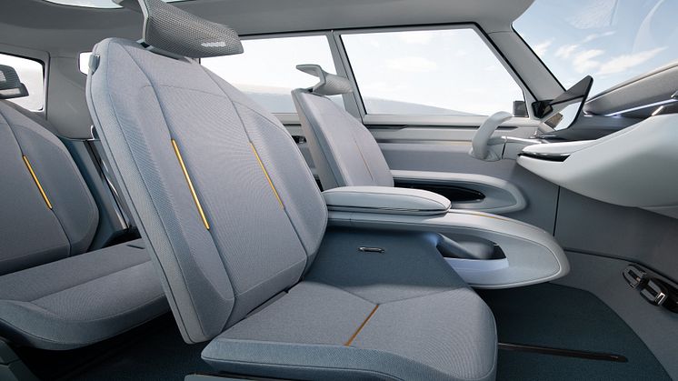 Enjoy öppnar upp interiören genom att vända på säteskonfigurationen på de tre raderna. I detta läge öppnas bakluckan för att ge alla passagerarna möjligheten att uppleva den yttre miljön och blicka bortom bilen medan de sitter bekvämt i bilen.