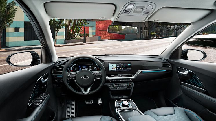 Designen av instrumentpanelen förändras likt den i Niro Hybrid och Niro Plug-In Hybrid. Den 10,25 tum stora pekskärmen går att anpassa efter egna önskemål i upp till tre sektioner. Apple CarPlay och Android Auto är standard, liksom bluetooth med röststyrning som också medger två uppkopplingar. Har man t ex personer i baksätet kan de styra musiken samtidigt som föraren fortfarande kan använda hands-free.